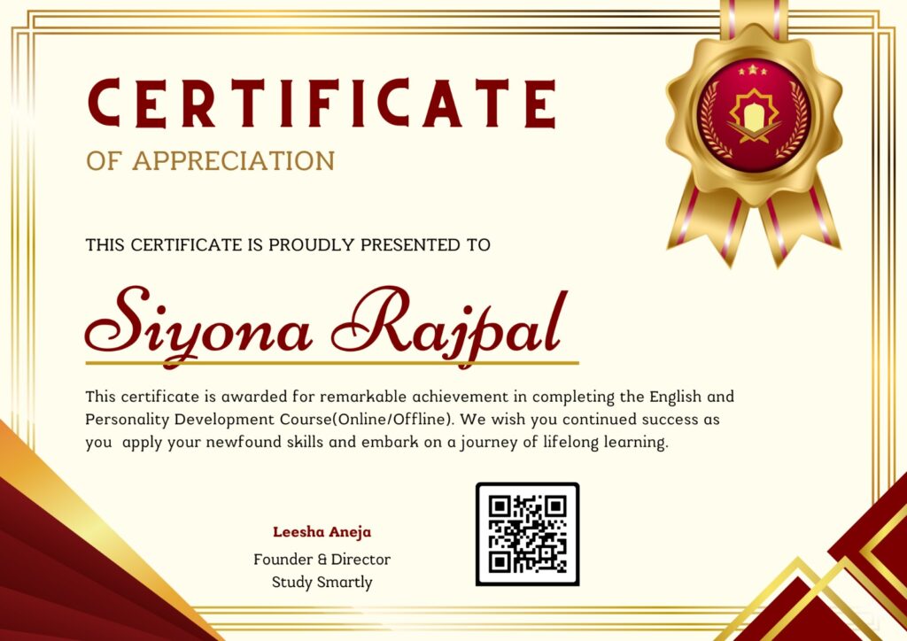 Study Smartly is the brainchild of Leesha Aneja, a distinguished Ph.D. scholar and an esteemed professor with over a decade of experience at a reputed university. With a rich background spanning more than 12 years in teaching, Leesha has honed her expertise in English language instruction and is passionately committed to student success. Her deep love for teaching and training has enabled her to transform the lives of over 2000 candidates, guiding them to reach their full potential. Check her profile on social media. Click the button below.